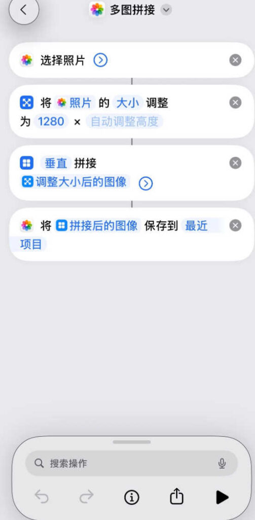 快速地将多张图片垂直拼接在一起,组合成一张图片,如图 快打开你的快捷指令一起动手来做吧 ~附上教程 当然我也在后台给大家准备好了快捷指令链接,老规矩,关键字【多图拼接】或者【快捷指令】自动获取把!!👇👇👇 小A 一个分享苹果公司最新动态的网站 View All Posts Post navigation Previous Post 给15年的老飞牛NAS升级硬件30元让15年老电脑重生:Q9400升级NAS实录,性能翻三倍Next Post这是clawdbot发布的第一篇文章
