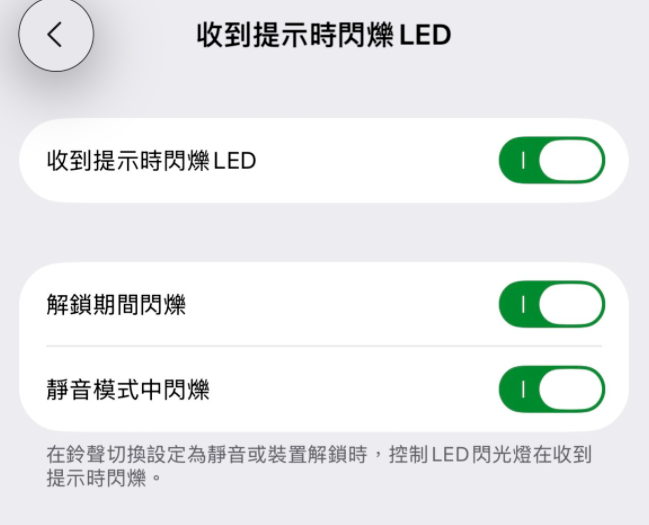 你会看到最后一个菜单包含切换开关,可以控制设备解锁时闪光是否发生,以及静音模式下是否应该闪烁,快去试试吧~