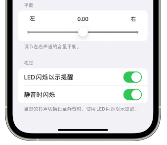 与某些安卓手机不同,iPhone 没有专门的通知指示灯,接到电话、短信或其他提醒时会亮起。iPhone 配备了一个可选的聋人和听障辅助功能,闪烁后置闪光灯并提供视觉提示通知。在 iOS 26.2 中,苹果还增加了闪现前屏的功能。