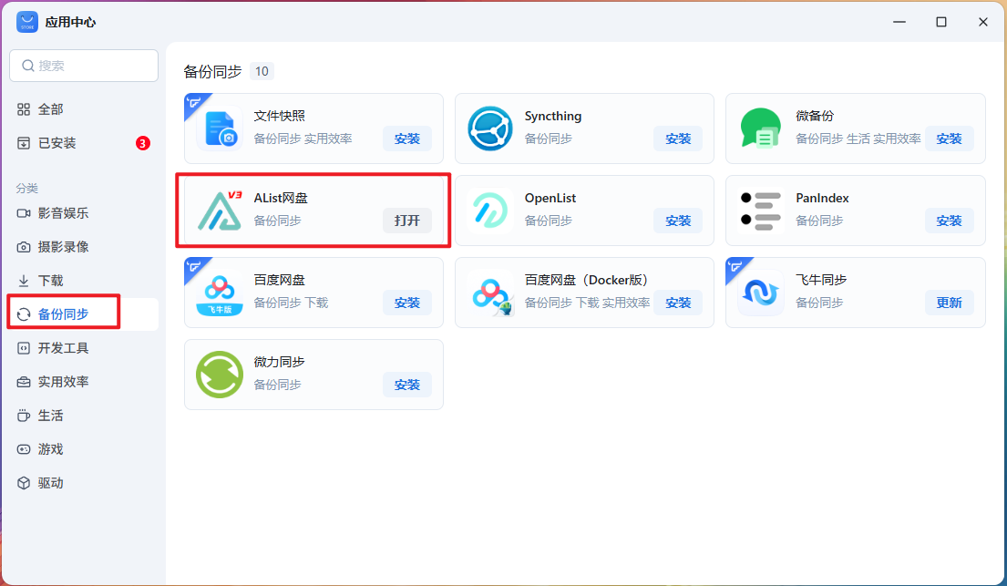 先在飞牛下载alist