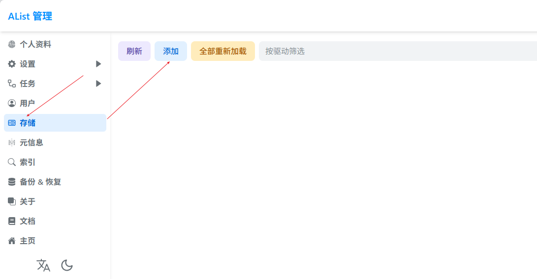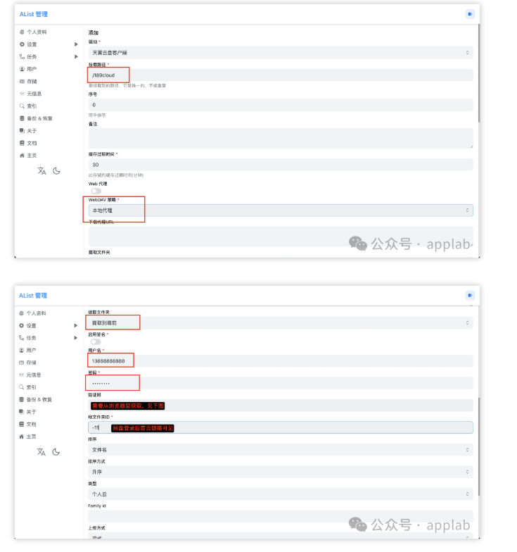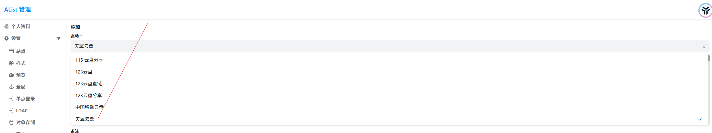 进入管理控制台,选择存储–》添加–》天翼云盘