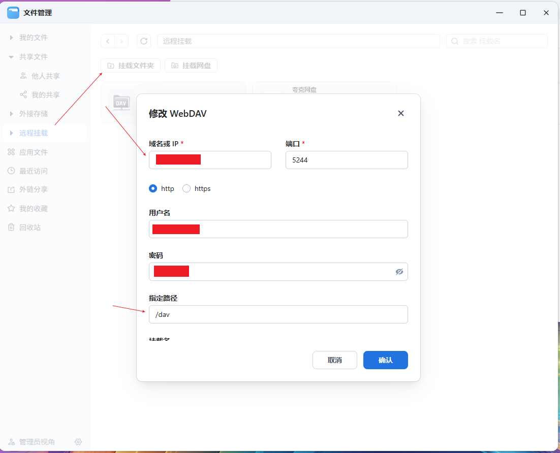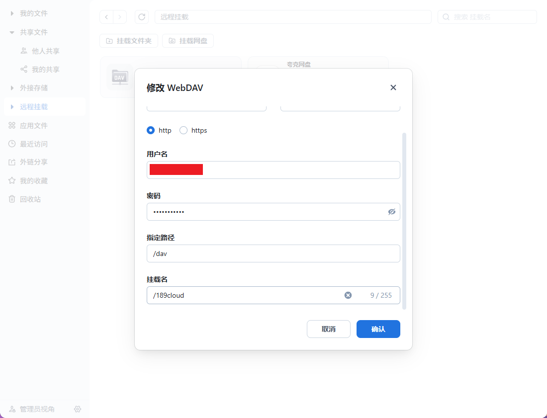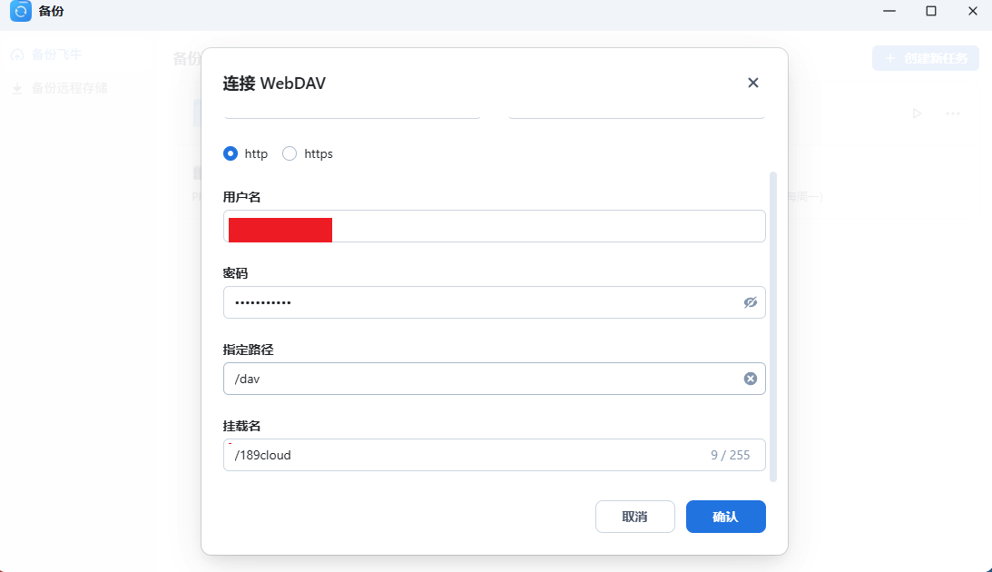 选择天翼网盘的webDav