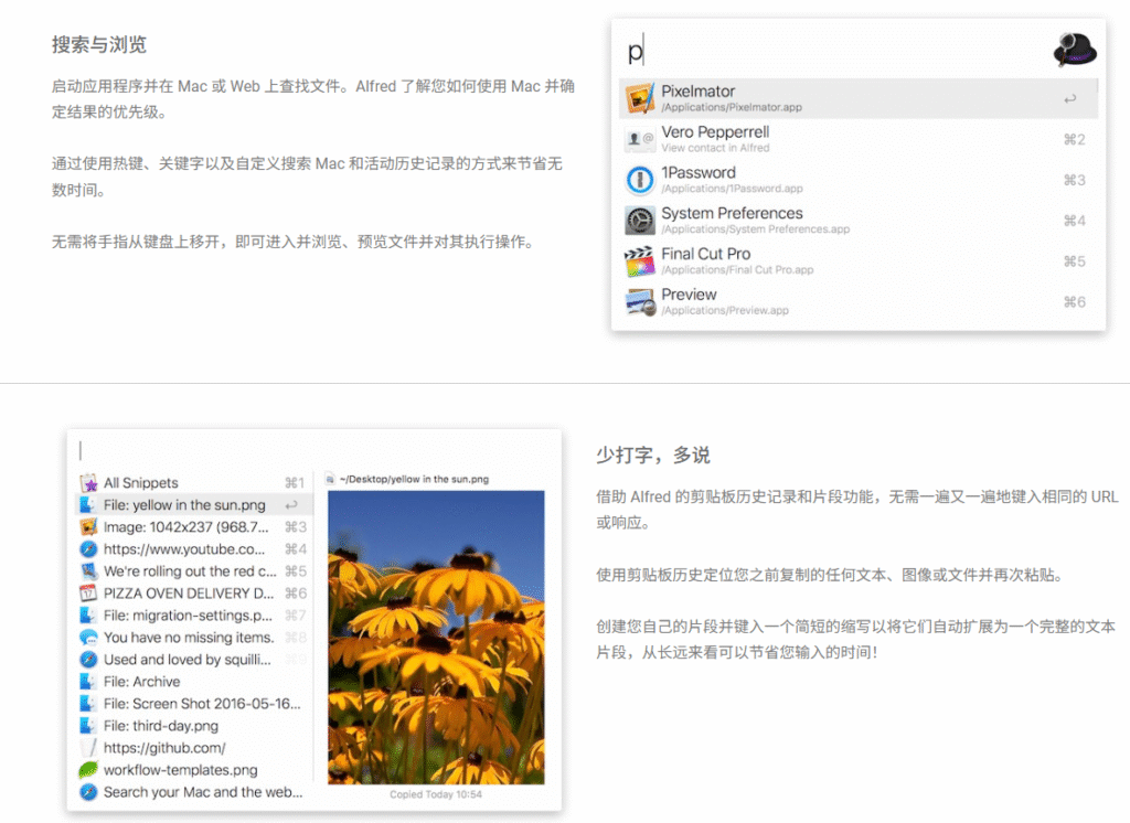 如果 Mac 只能留一个软件,我选 Alfred。 它被称为 macOS 上的效率之王。虽然长得像系统的“聚焦搜索”,但功能强大太多了。你可以用它快速启动 App、搜索文件、计算公式、甚至控制系统设置。