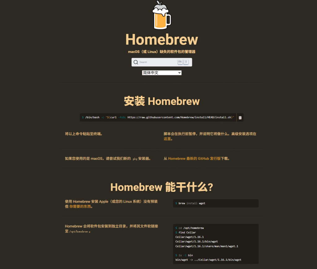 官网直达Homebrew — The Missing Package Manager for macOS (or Linux)