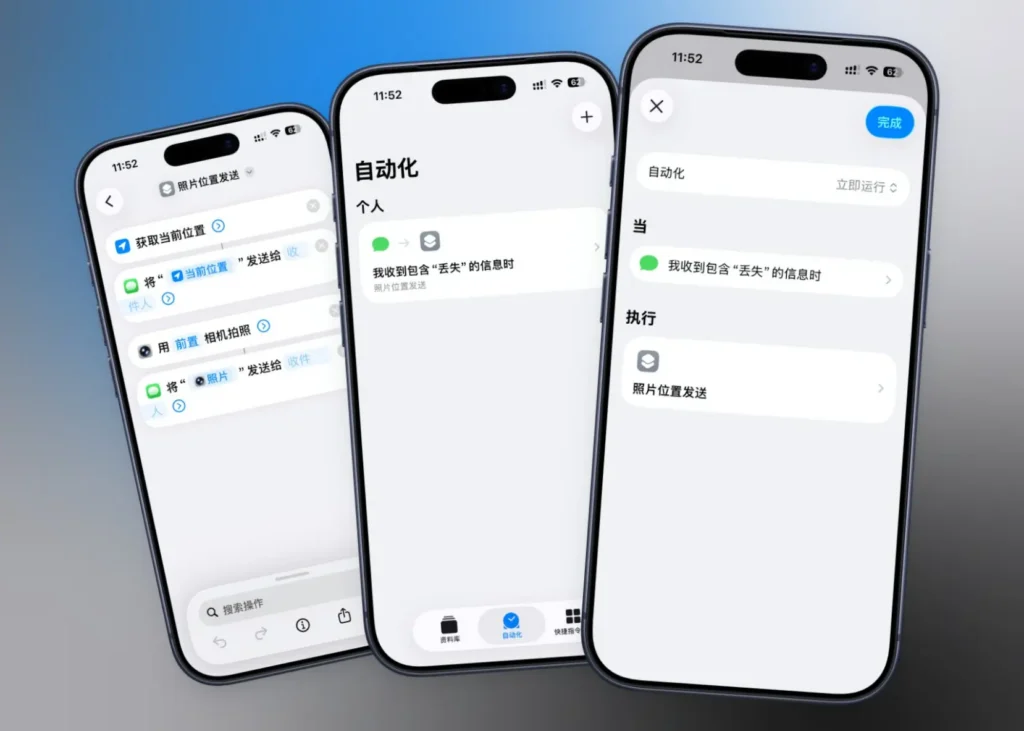 首先,你需要准备好一个执行“拍照+定位”动作的快捷指令脚本。搞定脚本后,按照以下步骤设置自动化: